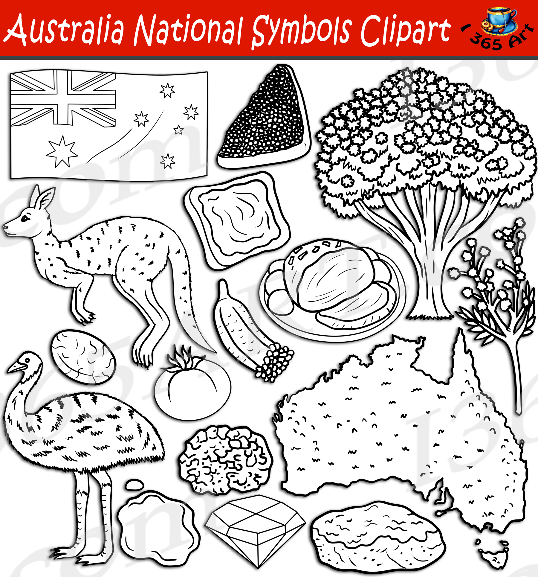 Australia National Symbols Clipart set contains various animals, elements and dishes from Australia. This set is perfect for educating your students about Australian customs and culture! School clipart perfect for use in brochures, story books, restaurant menus, food and cooking projects, classroom assignments and scrapbooking projects. Comes with 32 PNG format clip art graphics in both color and black and white. (16 full color and 16 black and white). Each file is 300 DPI Resolution size each and have a transparent background in PNG. These files are perfect for use commercially, personally or for school projects and activities.