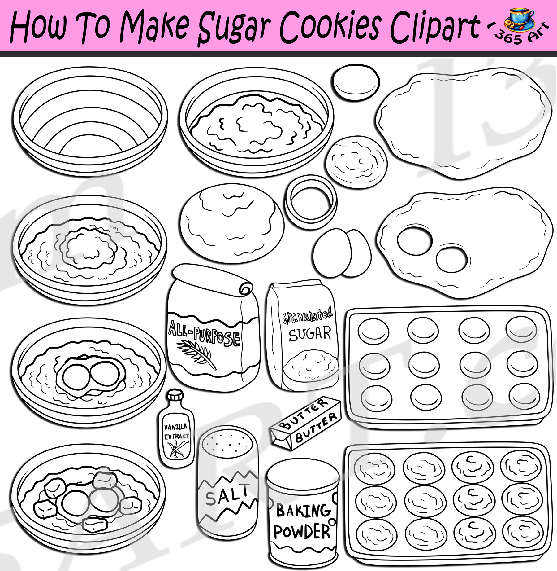 How To Make Sugar Cookies Clipart set contains various ingredients for making this delicious food. This set is perfect for educating your students in an entertaining way! School clipart perfect for use in brochures, story books, restaurant menus, food and cooking projects, classroom assignments and scrapbooking projects. Comes with 40 PNG format clip art graphics in both color and black and white. (20 full color and 20 black and white). Each file is 300 DPI Resolution size each and have a transparent background in PNG. These files are perfect for use commercially, personally or for school projects and activities.