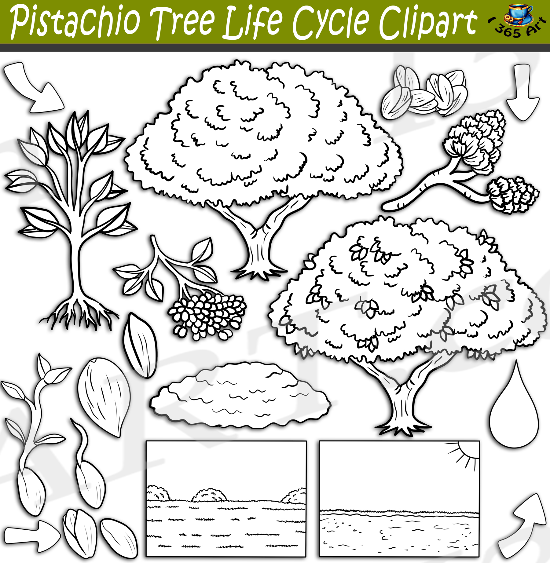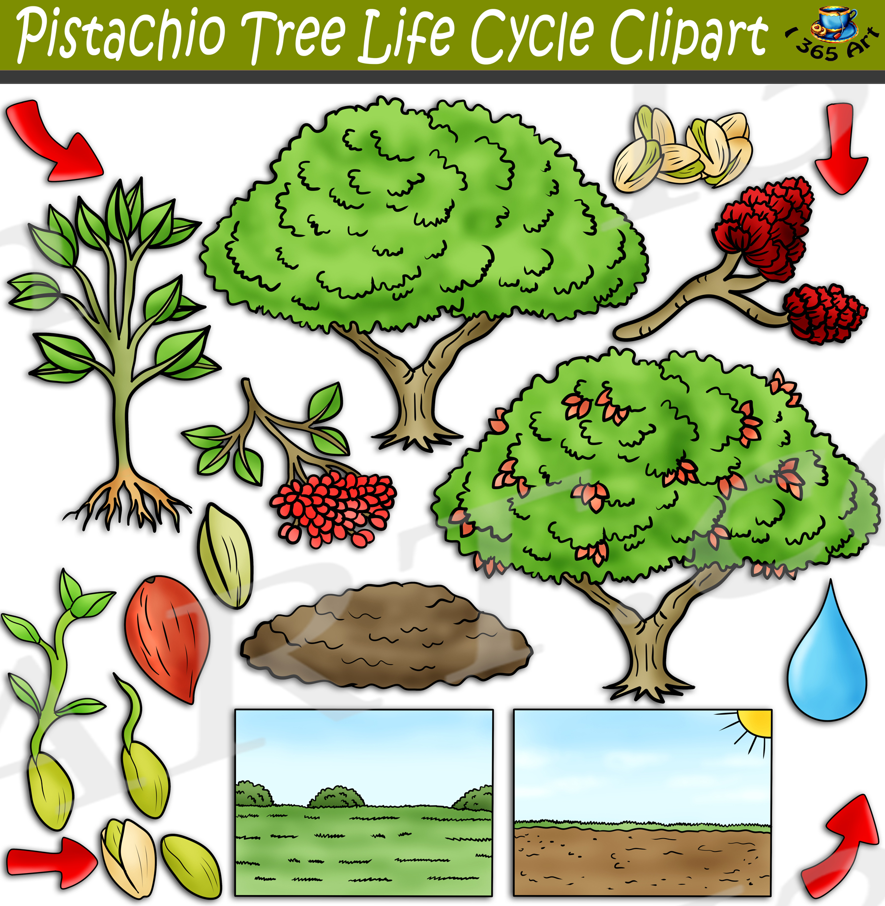 Pistachio Life Cycle Clipart Set is great for teaching your students about the cycle of a pistachio plant. This set is perfect for young children wanting to learn more about nature from around the world. Included in the set are 40 PNG format graphics in both color and black and white. (20 full color and 20 black and white). Each file is 300 DPI Resolution each and have a transparent background in PNG. These files are perfect for commercial and personal use. This set includes all of the following. Close mouth pistachio, fresh pistachio nut, pistachio flowers, pistachio fruit branch, pistachio nut, pistachio nut fruit, pistachios, 5 pistachio tree growth images, soil, water, 2 habitat backgrounds and 4 red arrows.