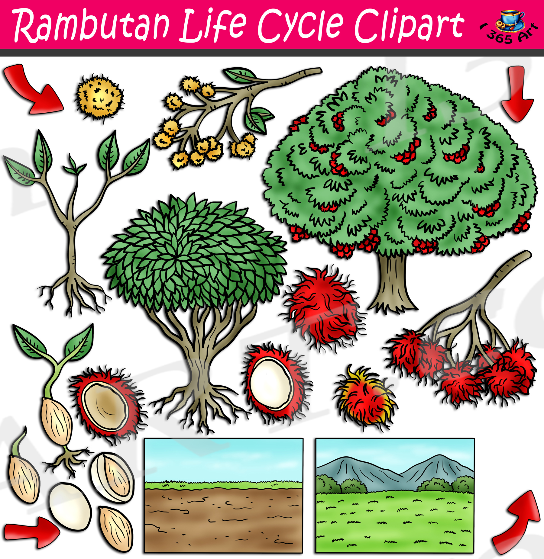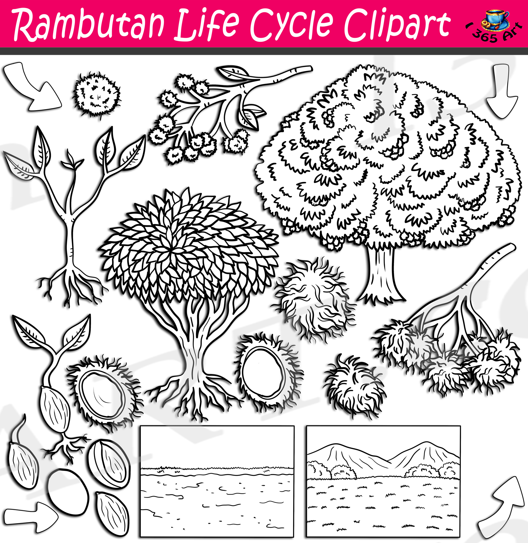 Rambutan Life Cycle Clipart Set Download is great for teaching your students about the cycle of a rambutan fruit plant. This set is perfect for young children wanting to learn more about nature from around the world. Included in the set are 42 PNG format graphics in both color and black and white. (21 full color and 21 black and white). Each file is 300 DPI Resolution each and have a transparent background in PNG. These files are perfect for commercial and personal use. This set includes all of the following. 2 rambutan fruit branches, rambutan (flesh, flesh with seed), 3 rambutan whole fruit, rambutan peel, rambutan seed, 5 rambutan tree growth images, rambutan unripe, 2 habitat backgrounds and 4 red arrows.