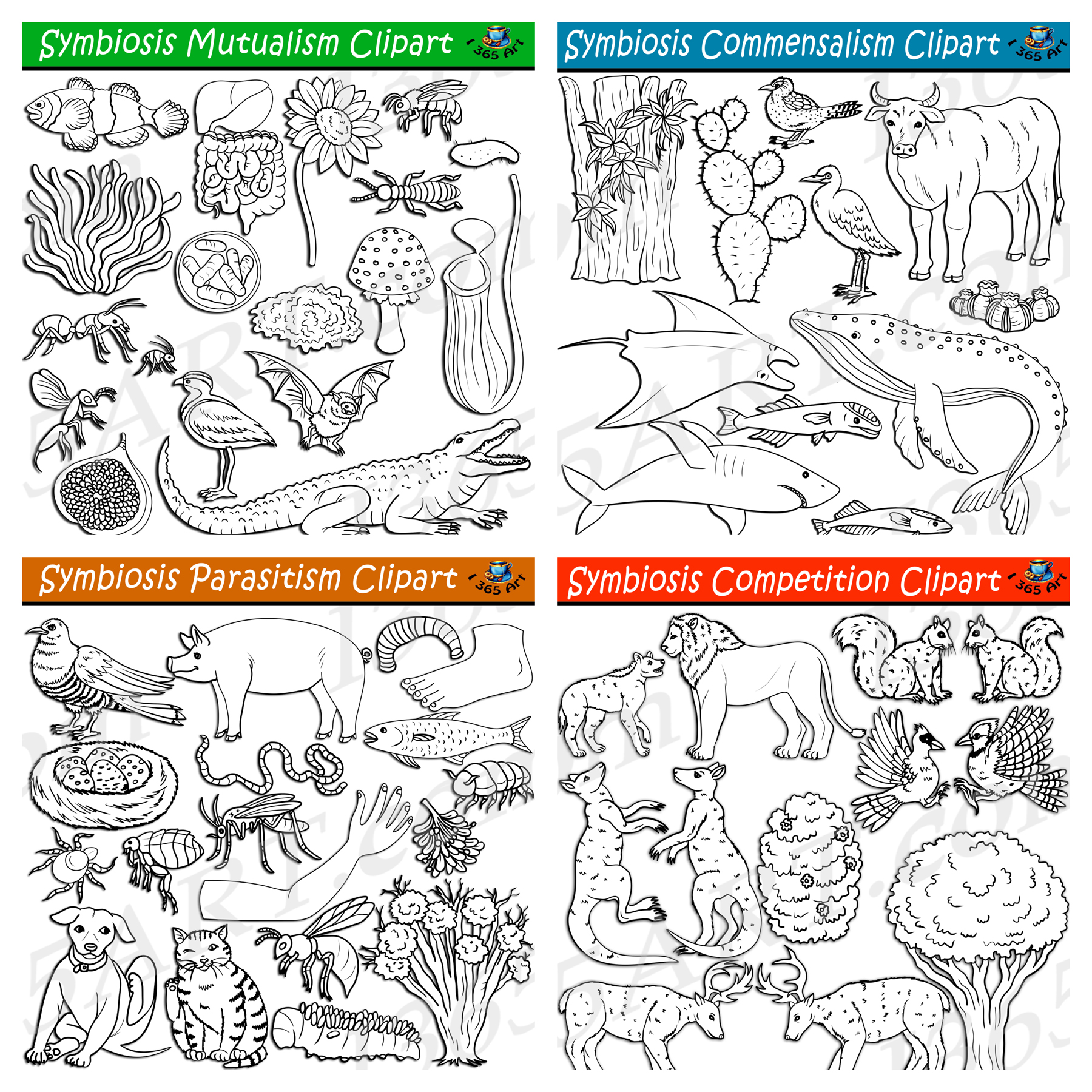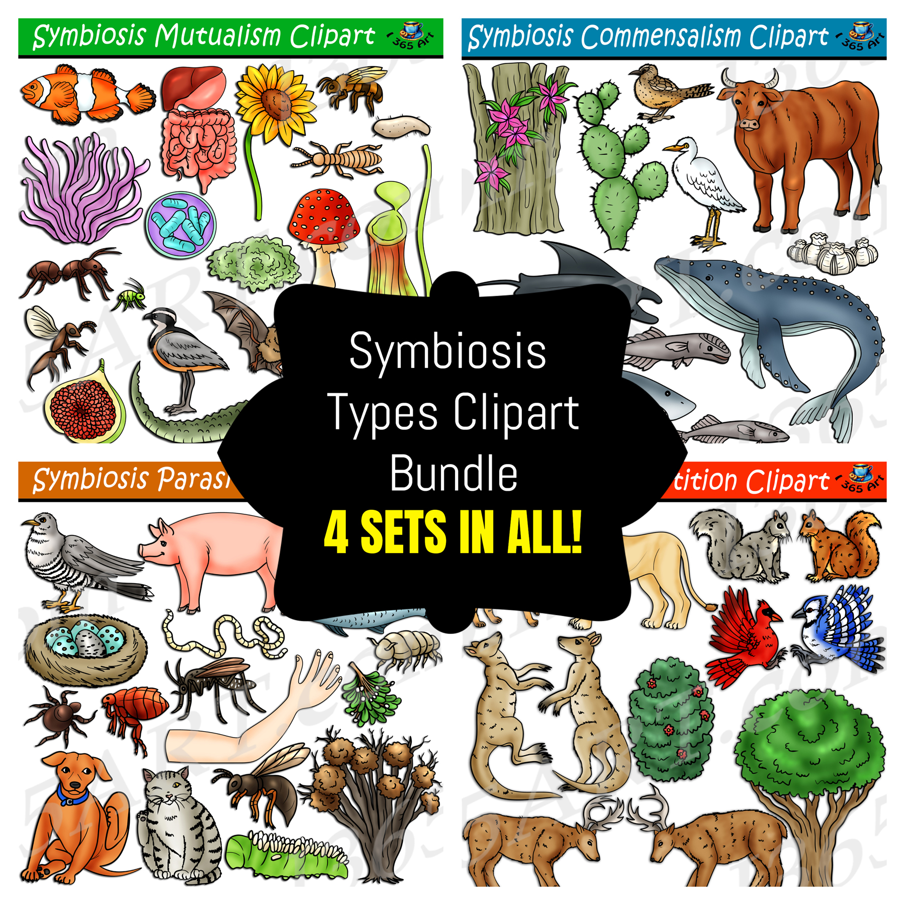 Symbiosis Clipart Bundle set contains 118 graphics and features 8 ‘Symbiosis’ sets. This set is perfect for science projects and activities! School clipart perfect for use in brochures, story books, restaurant menus, school projects, classroom assignments and scrapbooking projects. Comes with 118 PNG format clip art graphics in both color and black and white. Each file is 300 DPI Resolution size each and have a transparent background in PNG. These files are perfect for use commercially, personally or for school projects and activities.